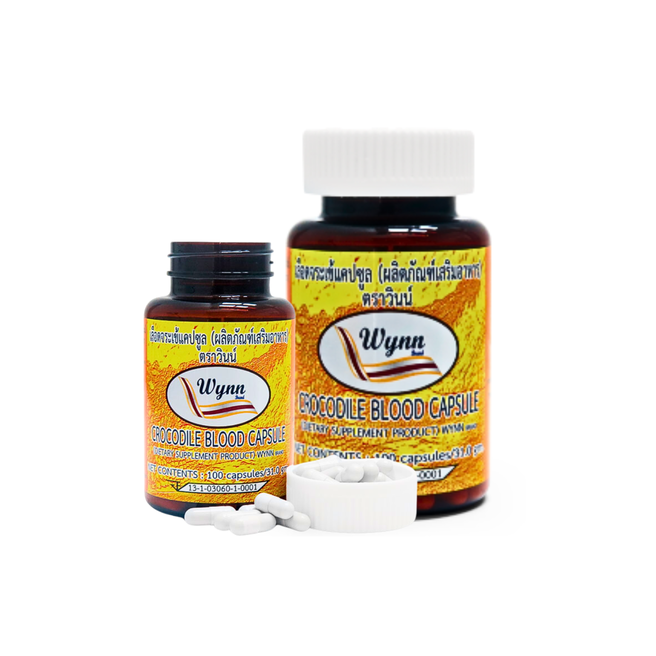 Wynn (วินน์) เลือดจระเข้ชนิดแคปซูล งานวิจัยโดยรศ.ดร.วิน เชยชมศรี คณะวิทยาศาสตร์ มหาวิทยาลัยเกษตรศาสตร์ ให้ธาตุเหล็กเข้มข้น และสารอาหารที่จำเป็น