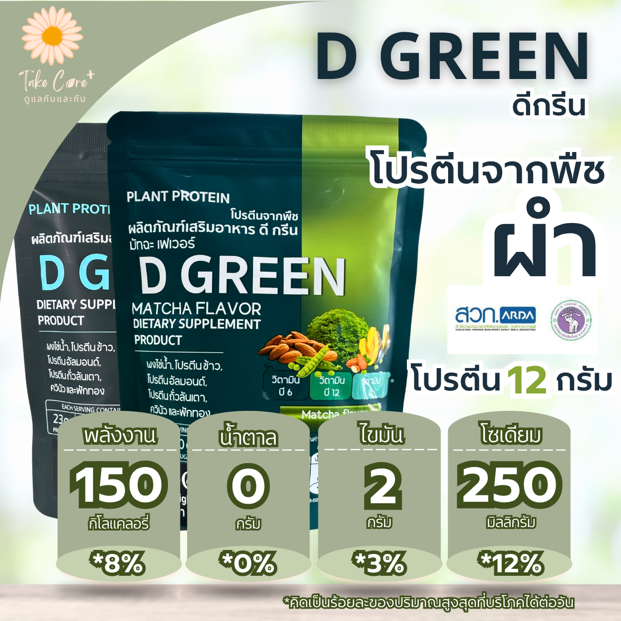 ผลิตภัณฑ์เสริมอาหาร D Green (ดีกรีน) โปรตีนพืชจากไข่น้ำ (ผำ) อัลมอนด์ ถั่วลันเตา ฟักทอง ควินัว ขนาด 250 กรัม