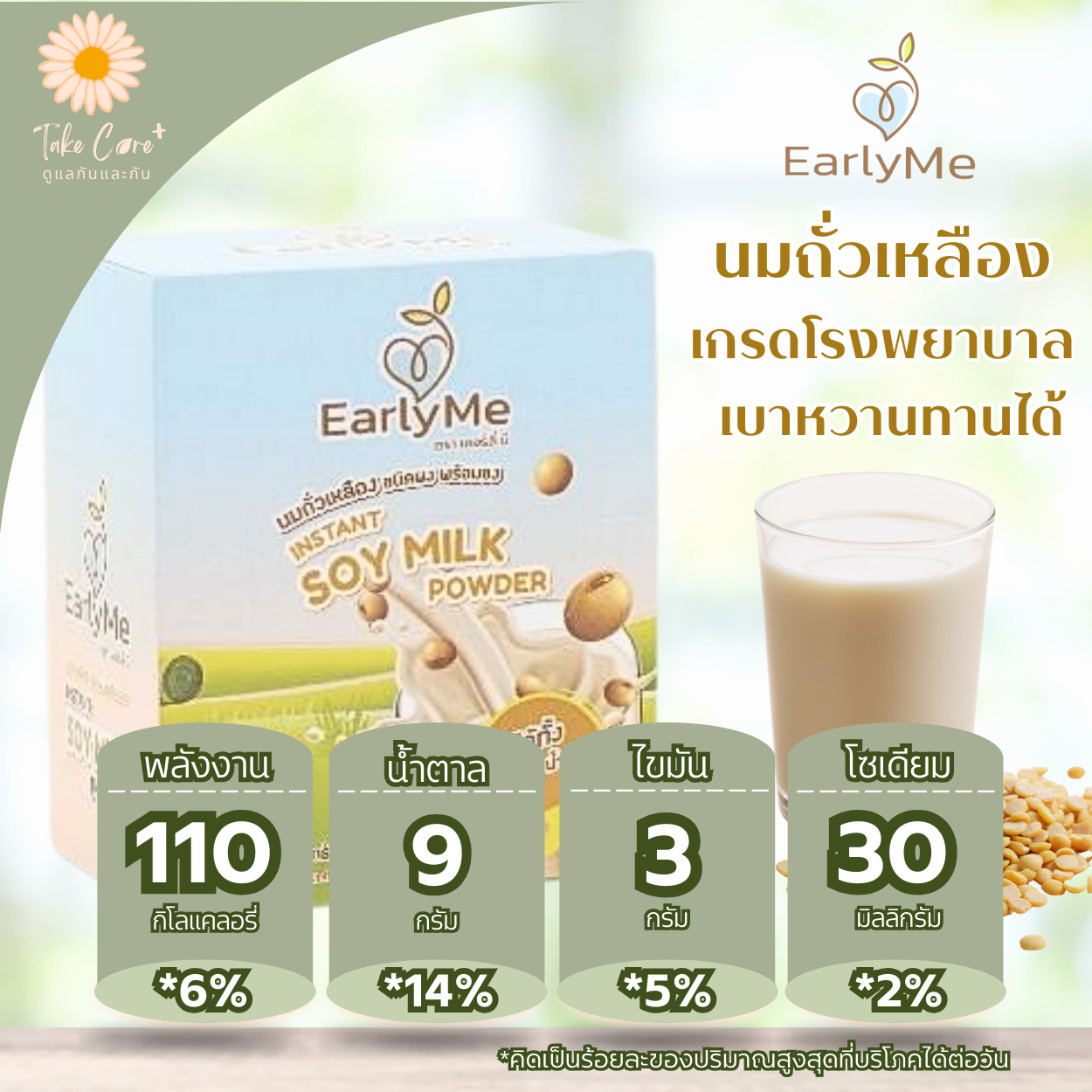 Early Me (เออร์ลี่ มี) นมถั่วเหลืองชนิดผงชงดื่ม เกรดโรงพยาบาล 6 ถุง/กล่อง รวม 150 กรัม