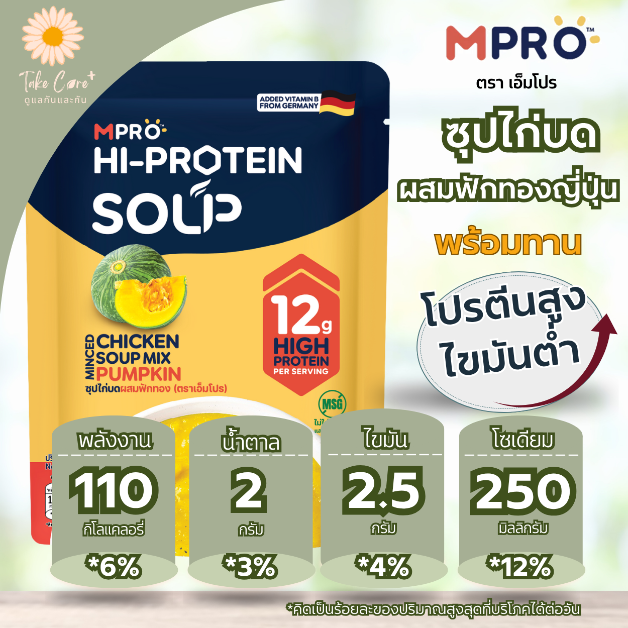 MPro [เอ็มโปร] ซุปไก่ปั่น โปรตีนสูง อาหารเหลวผู้สูงอายุ อาหารเหลวคนป่วย อาหารผู้ป่วยติดเตียง จากเนื้อไก่แท้ อร่อย กลมกล่อม พร้อมทาน ขนาด 175 กรัม