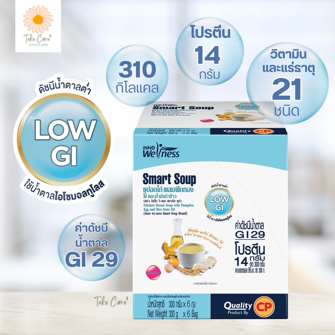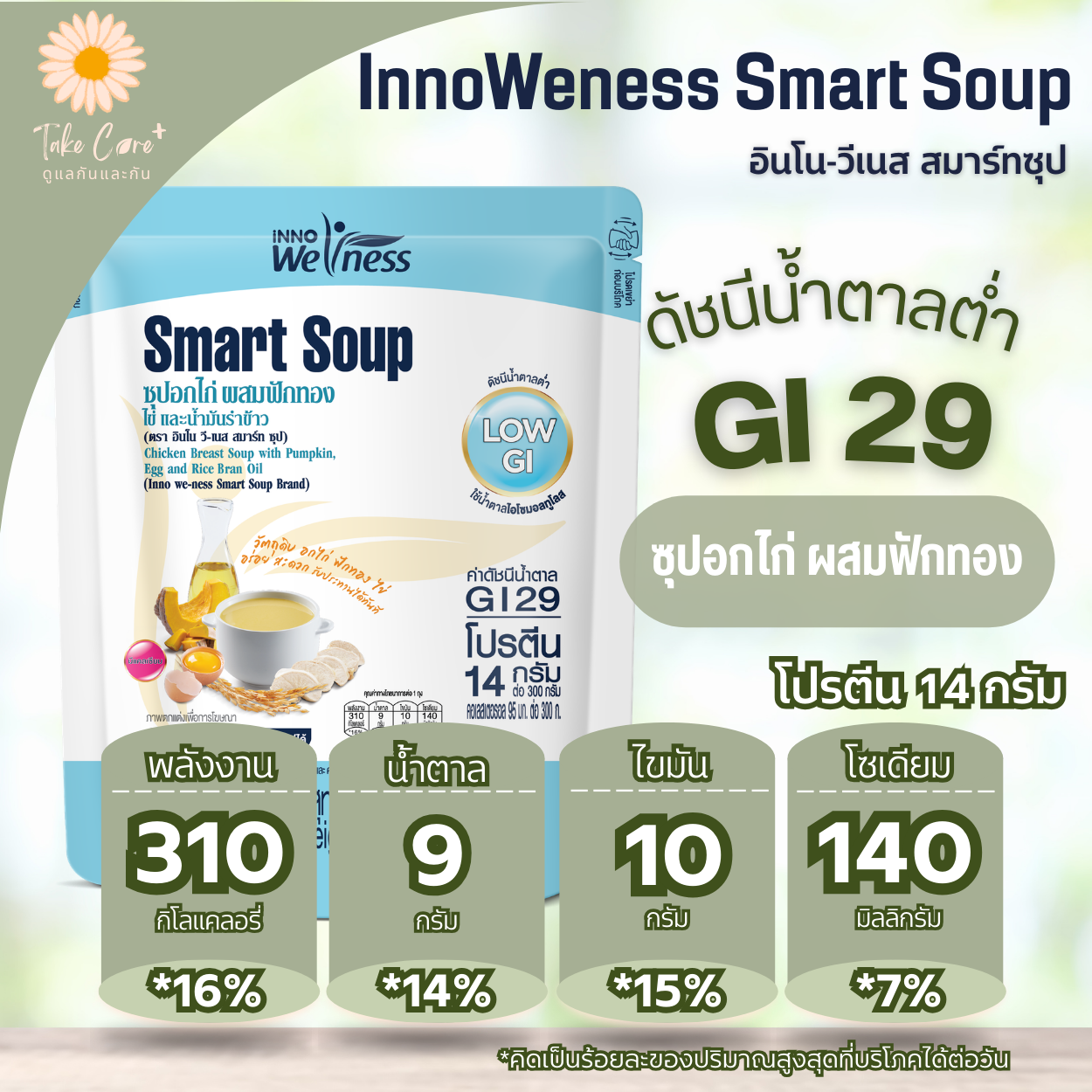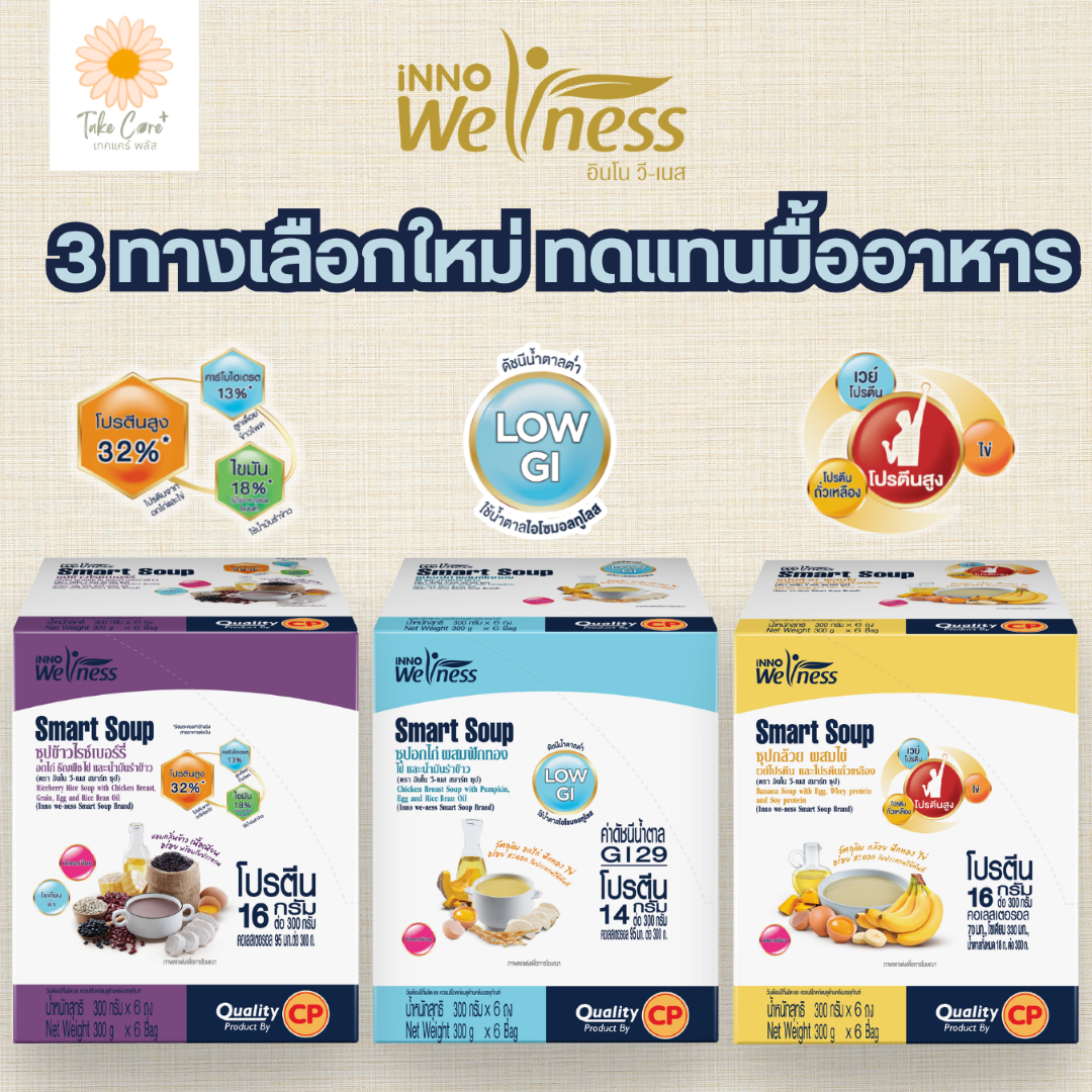 Smart Soup (สมาร์ทซุป) อาหารสูตรครบถ้วนที่มีส่วนประกอบของสารอาหารที่จำเป็นครบ 5 หมู่ และมีน้าตาลไอโซมอลทูโลสที่มีค่าดัชนีน้ำตาลต่ำ (Low Glycemic Index) ช่วยให้ร่างกายดูดซึมน้ำตาลช้าลง ช่วยควบคุมระดับน้าตาลในเลือด สามารถใช้ทดแทนอาหารมื้อหลักหรือเป็น