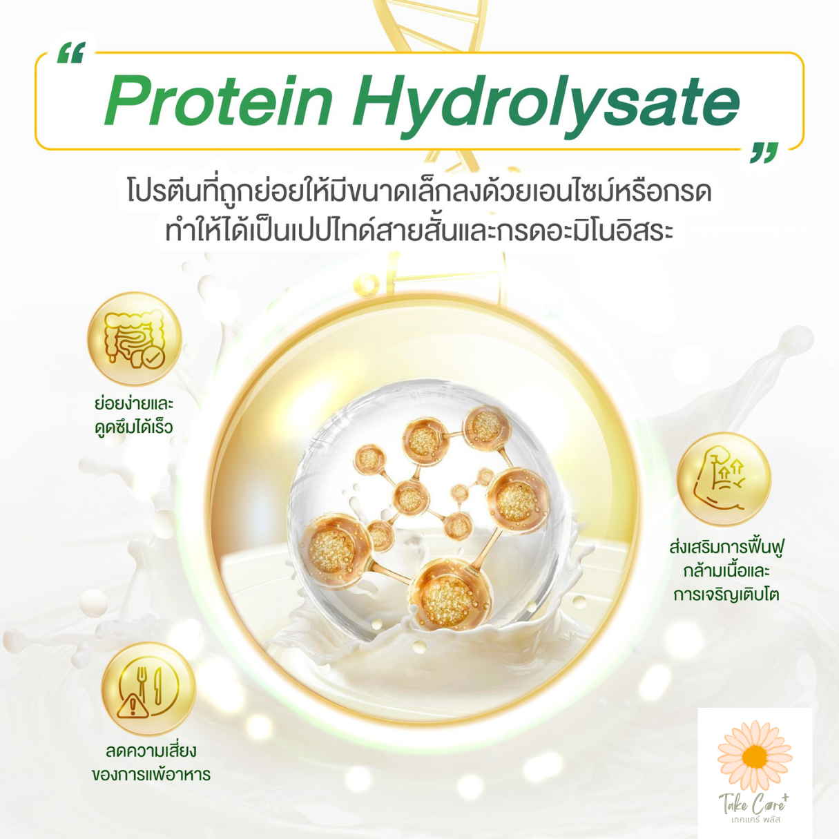 ให้โปรตีน 22 กรัม/ซอง โดยเป็นส่วนประกอบจาก Hydrolyzed Protein 24 กรัม