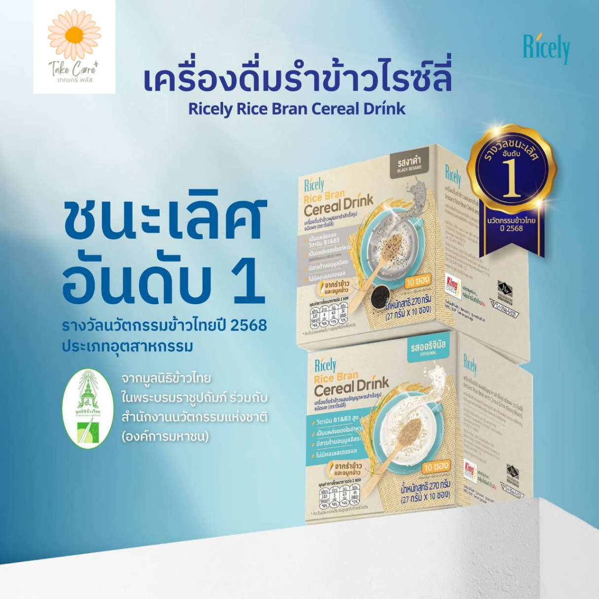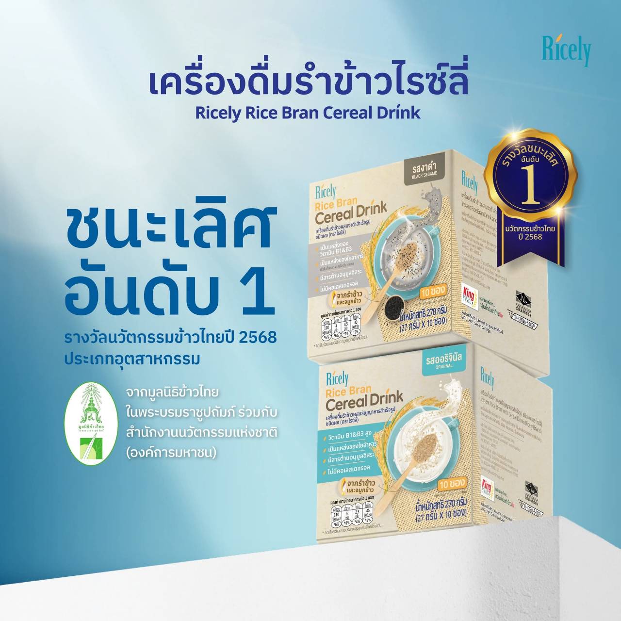 รางวัลชนะเลิศอันดับ 1 นวัตกรรมข้าวไทย 2568 จากมูลนิธิข้าวไทย ในพระบรมราชูปถัมภ์ และสำนักงานนวัตกรรมแห่งชาติ (NIA)