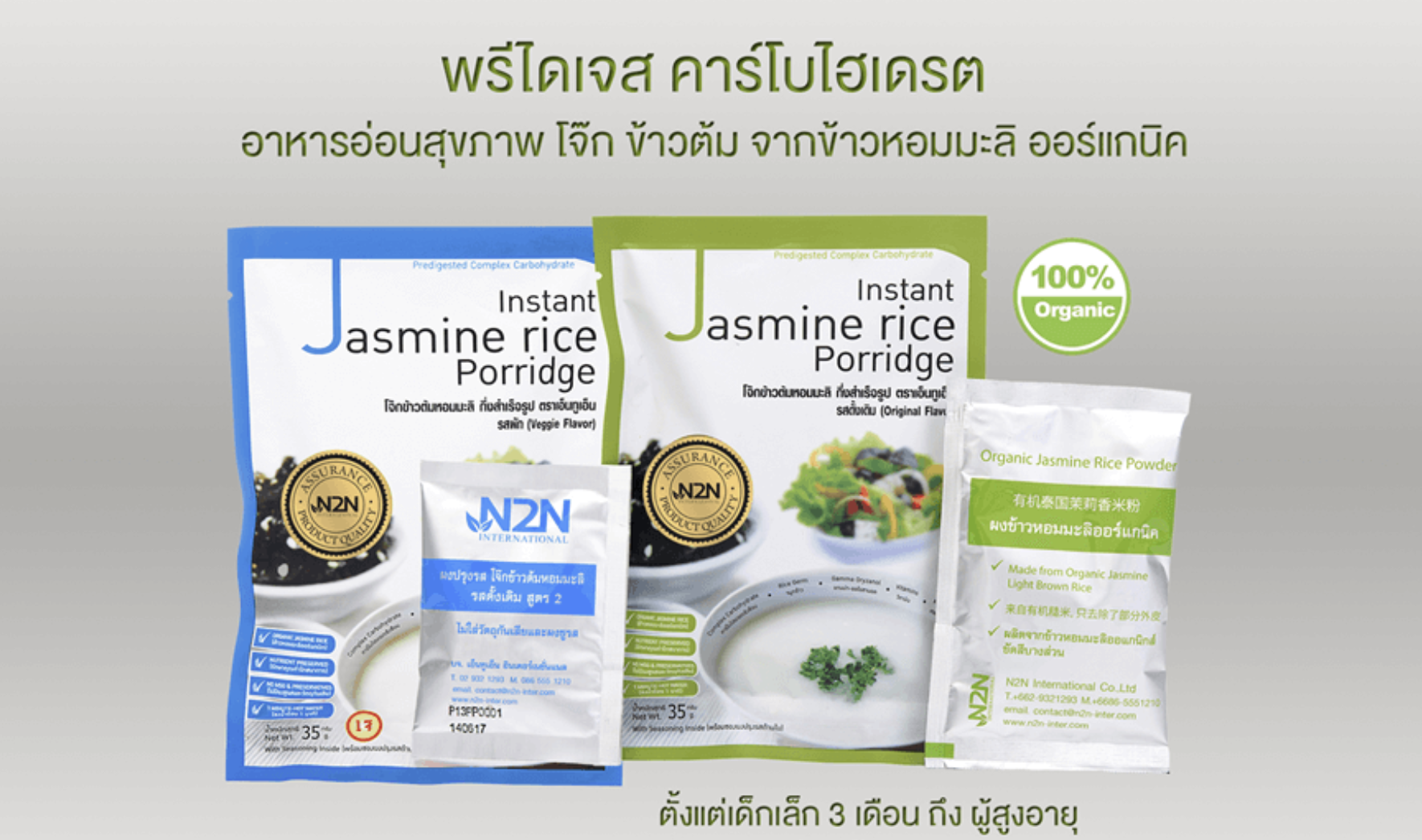 โจ๊กข้าวต้มหอมมะลิ และโจ๊กข้าวกล้องไรซ์เบอร์รี่ ออร์แกนิค N2N (เอ็นทูเอ็น) ขนาด 35 กรัม